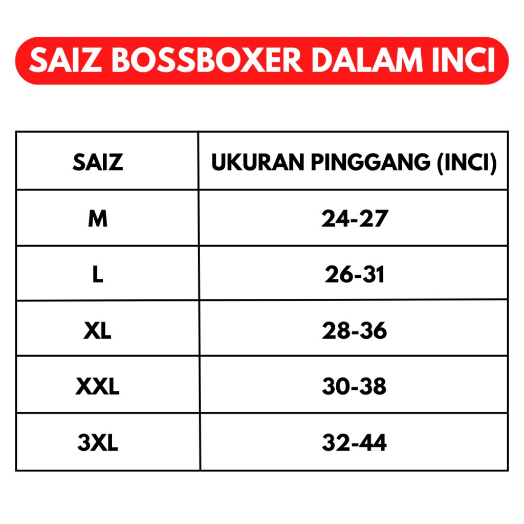 Paling penting, BossBoxer tidak akan kendur walaupun dipakai hingga 3 tahun!